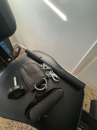 Accesorios para máquina de gimnasio. - Barra negra. - Agarre de mano. - Correa para tobillo. - Cadena metálica. - Tornillo de ajuste. * El comprador tendra que venir y desmontar la maquina para poder llevarsela, se vende por no usarse.