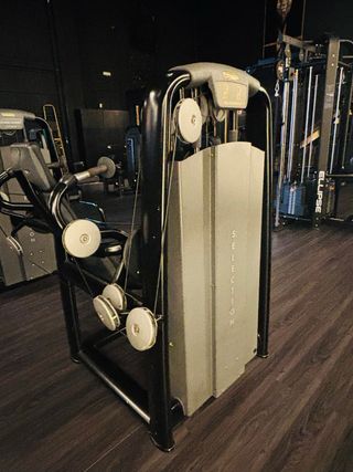 Equipo de gimnasio para entrenamiento de hombros. - Diseño robusto y profesional. - Asiento y respaldo acolchados. - Brazos de movimiento independiente.