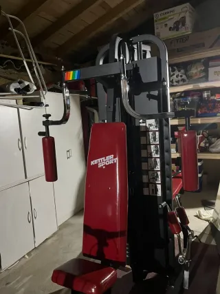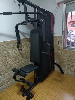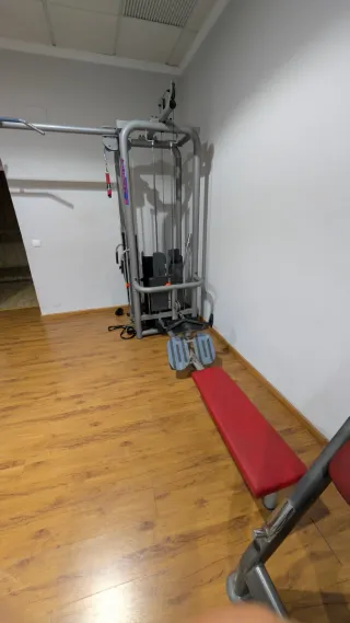 Vendo multigimnasio KLARFIT en muy buen estado y totalmente funcional. Ideal para entrenar en casa todo el cuerpo sin necesidad de ir al gimnasio. 🔹 Marca: KLARFIT 🔹 Tipo: Multigimnasio con pesas 🔹 Estado: Usado, bien cuidado (ver fotos reales) 🔹 Estructura robusta y estable Incluye múltiples ejercicios: • Press de pecho • Jalón dorsal • Mariposa • Curl de piernas • Extensión de piernas • Poleas para brazos y espalda • Banco acolchado cómodo y resistente 📦 Se vende tal y como se ve en las fotos 📍 Recogida en mano (por tamaño y peso) 💪 Probada y funcionando correctamente