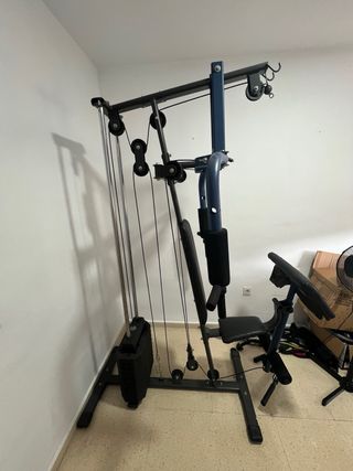Máquina de gimnasio multifunción esta muy bien en general , funciona perfectamente para hacer varios músculos, viene con 3 extras para hacer ejercicio