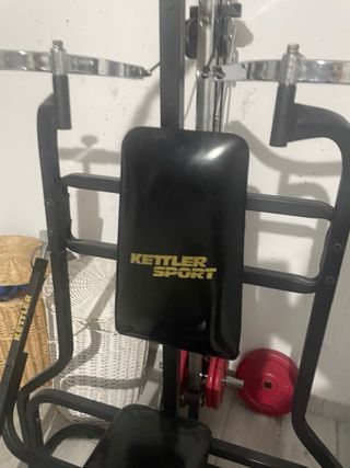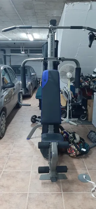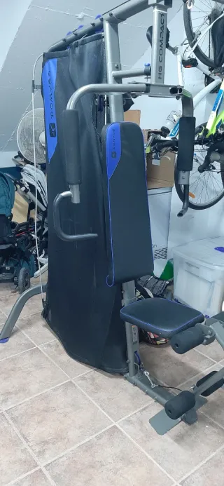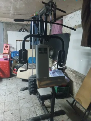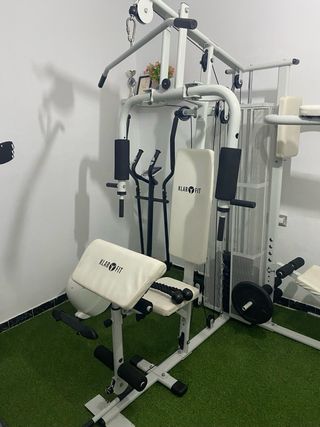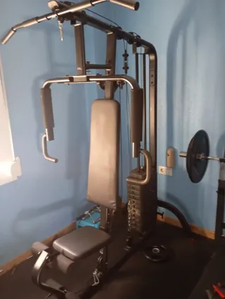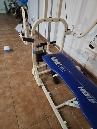 Máquina multifunción para entrenar en casa. Se encuentra en buen estado. - Estructura robusta. - Incluye pesas. - Asiento acolchado.