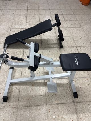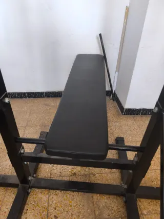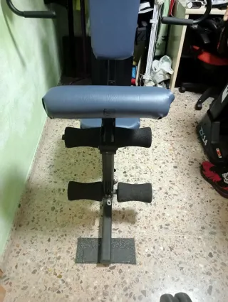 HE VUELTO A REPETIR EL ANUNCIO PORQUE NO ME DEJA EDITAR EL ANTERIOR Y RETIRAR LA ETIQUETA DE RESERVADO. Equipo de gimnasio versátil para entrenar en casa. - Estructura de acero resistente. - Banco acolchado. - press de banca - Polea alta con barra para jalones - Extensiones de pierna - Accesorio para Larry scott ( biceps ) - pequeño desperfecto en el tapizado a la altura de la cabeza. Se entraga tal y como se ve en la foto , sin pesos ni barras, a escepcion de la barra alta de la polea, El precio no es negociable. No hago envios.