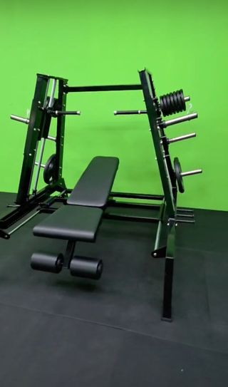 Maravillosa máquina de gimnasio, con pesas, banco de abdominales