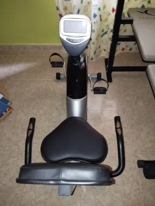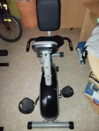 Bicicleta estática para entrenamientos en casa. Diseño moderno y funcional. - Asiento con respaldo. - Pedales con agarre. - Estructura robusta. Banco abdominales Máquina de pesas y Stepper Todo en perfecto estado se vende por falta de espacio