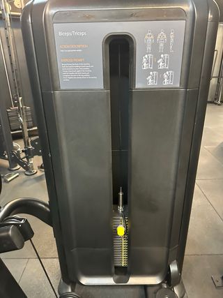 Equipo de gimnasio para trabajar bíceps y tríceps. - Diseño robusto y duradero. - Asiento acolchado para mayor comodidad. - Brazos ajustables para diferentes ejercicios.