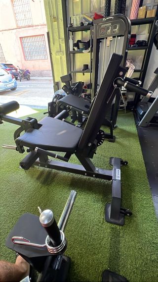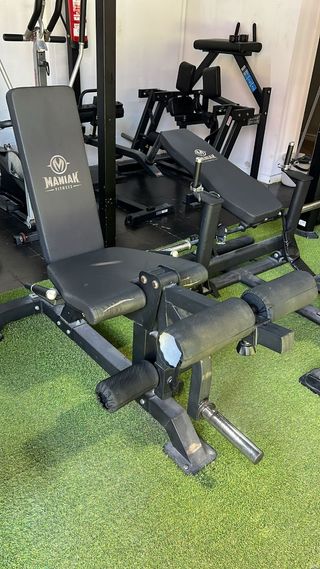 Máquina de gimnasio para hacer extensiones de cuádriceps y femoral. Está en buenas condiciones, aunque tiene algunas marcas de uso. - Perfecta para entrenar piernas. - Diseño robusto y duradero. - Incluye dos posiciones de entrenamiento.
