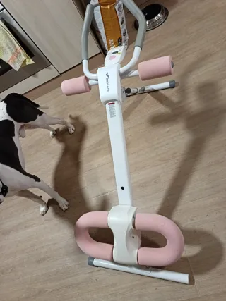 Máquina para ejercitar abdominales de la marca Merach. Diseñada para facilitar tu rutina de ejercicios en casa. - Color blanco y detalles en rosa. - Empuñaduras acolchadas para mayor comodidad. - Base estable para un uso seguro. Gym, gimnasia, fitness, fitnes, eliptica, abdominales, ejercicio,