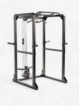 Rack de poleas para entrenamiento en casa o gimnasio. Permite realizar una gran variedad de ejercicios. Accesorio para rack 900 decathlon - Estructura metálica robusta. - Sistema de poleas y cables. No incluye agarres. Se puede adaptar a otras máquinas con ingenio.