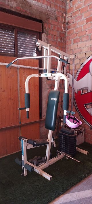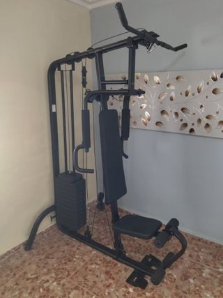Máquina de gimnasio completa para entrenar en casa. Estructura robusta y diseño compacto. - Torre de pesas incluida. - Asiento acolchado. Muy poco uso