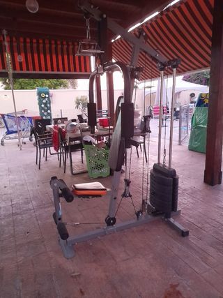 Se vende máquina de multi-gimnasio para entrenar en casa. Ideal para trabajar diferentes grupos musculares. - Estructura robusta de acero. - Incluye pesas. - Asiento acolchado.