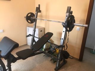 Máquina de gimnasio banco y pesas