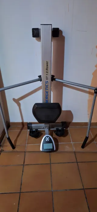Máquina de remo de la marca Energetics. - Asiento acolchado. - Reposapiés ajustables. - Pantalla digital con información del ejercicio.