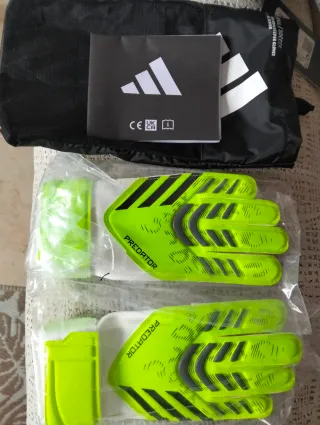 Guantes de portero Adidas Predator en color neón. - Diseño Predator. - Talla 5 - Logo Adidas. - Incluye bolsa de transporte. - A estrenar. Regalo pequeño que no se pudo descambiar. - Originales. Funda oficial.