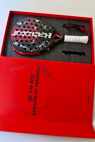 Pala de pádel Babolat Technical Viper edición especial Juan Lebrón. Raqueta de pádel Babolat Technical Viper, edición especial LeBron. Diseño exclusivo. Color negro, rojo y turquesa. Logo Babolat bien visible. En excelentes condiciones. Dos correas nuevas. Overgrip nuevo usada 3 veces . Lista para usar. Estuche original en excelentes condiciones.