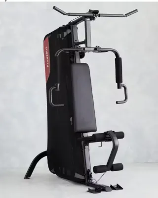 Equipo de gimnasio multiestación para entrenar en casa. Diseñado para ofrecer una variedad de ejercicios. - Estructura robusta de acero. - Asiento y respaldo acolchados. - Barras de agarre ergonómicas. - Incluye soportes para piernas.