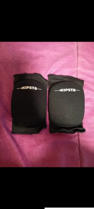 Par de rodilleras negras de la marca Kipsta. - Diseñadas para voley u otros deportes. - Tejido elástico y acolchado.