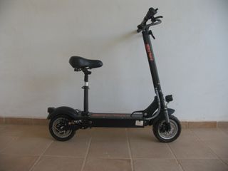 Patinete eléctrico HALTEN en color negro, con asiento plegable. - Asiento acolchado. - Manillar ajustable. - Suspensión delantera y trasera. - 40-45 km autonomía - tres modos de potencia y velocidad maxima