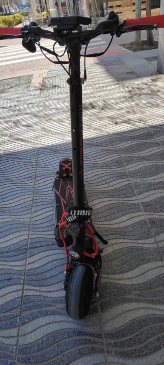 Patinete eléctrico Kukirin G2 Master en color negro y detalles en rojo. - Diseño deportivo. - Manillar ajustable. - Ruedas todoterreno.