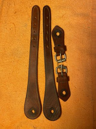 Correas de cuero para espuelas de estilo western. Son resistentes y están hechas para durar. - Material: Cuero - Color: Marrón - Cierre con hebillas