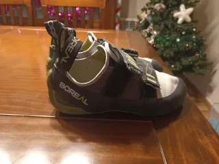 Pies de gato Boreal ninja en talla 35/36. Ajustables en la parte trasera para la talla. Uno de los pies de gato hay que recauchutar la punta se ha empezado abrir. Su precio en mercado 50€ como hay que recauchutar y esta usado solo en rocodromo los dejo a ese precio. - Color rojo y verde. - Cierre de velcro. - Diseño con dibujo de figura humana.