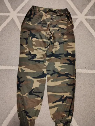 Pantalón de estilo militar con estampado de camuflaje. - Diseño con múltiples bolsillos. - Cintura elástica con cordón. - Puños ajustados.
