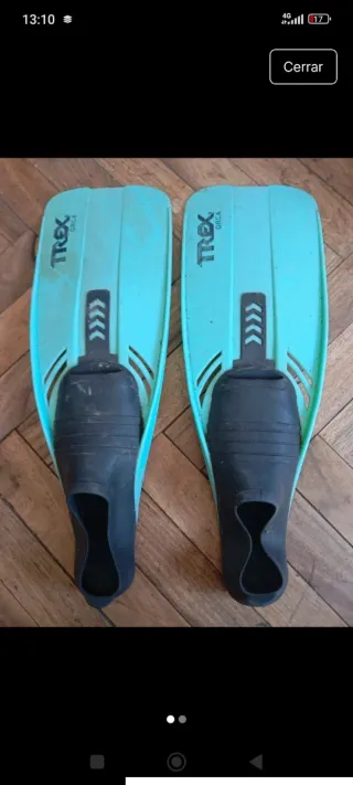 Aletas de natación T-Rex en color azul turquesa. - Talla 36-38. - Diseño ergonómico para mayor comodidad. - Pala ancha para propulsión. - Material flexible y resistente.