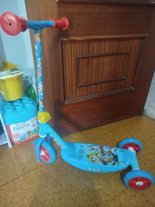 Patinete infantil con diseño de la Patrulla Canina. Ideal para los más pequeños. - Tres ruedas para mayor estabilidad. - Diseño colorido con personajes de la Patrulla Canina. - Tiene muy poco uso,y lo poco que se ha usado ha sido por casa,creo que a la calle solo lo sacamos un día