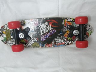 Monopatín skate de la marca Rip Curl, con diseño ColaCao. Ideal para deslizarse y divertirse. - Tabla de madera. - Ruedas rojas.