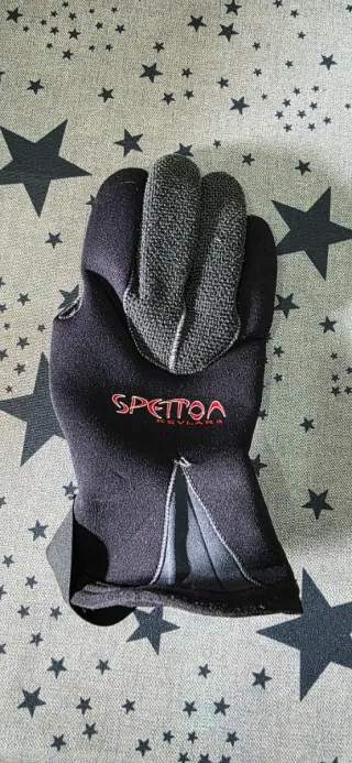 Guante de pesca submarina Spetton con protección Kevlar.SÓLO MANO DCHA Talla L. Ni rasguños ni reparaciones ni roturas. ESTADO: NO RECUERDO SI LO LLEGUE A USAR. UNA JORNADA/ SALIDA COMPLETA YA OS DIGO QUE NO. - Material: Neopreno de 3mm. - Refuerzo en la palma y dedos con Kevlar. - Cierre de velcro ajustable en la muñeca.