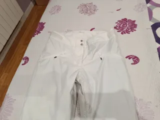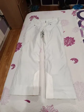 Pantalón de esquí en talla M. Ideal para disfrutar de la nieve con comodidad. Está usado en 3 ocasiones, pero tiene desgastado un poco en el bajo de las perneras porque me arrastran un poco. También al ser blancos tienes algunas manchas en la parte baja de las piernas, pero es casi imperceptible. - Color blanco. - Diseño moderno.