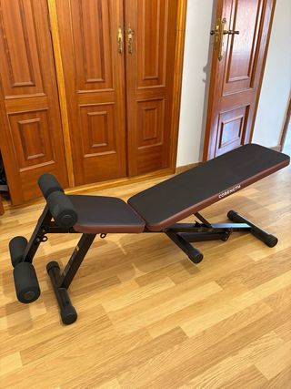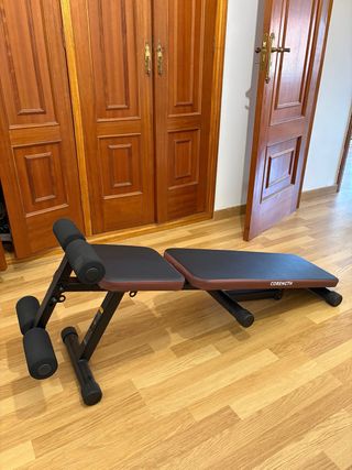 Banco de musculación CORENGTH con acolchado. - Estructura metálica negra. - Acolchado en asientos y rodillos. - Diseño ergonómico. (Nunca se usó).