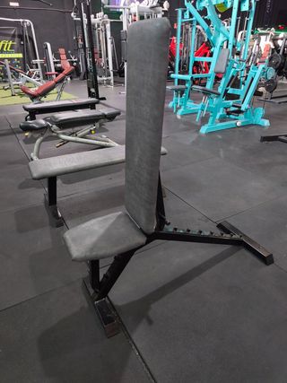 Banco de pesas para entrenamiento completo del cuerpo. Ideal para rutinas de fuerza y tonificación. - Estructura metálica robusta. - Asiento y respaldo acolchados. - Soporte para ejercicios. - Diseño compacto.