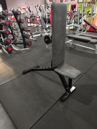 Banco de gimnasio regulable y plano de la marca Gym 80. Ideal para diversos ejercicios. - Diseño robusto y duradero. - Tapicería en color gris.