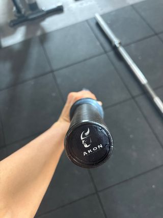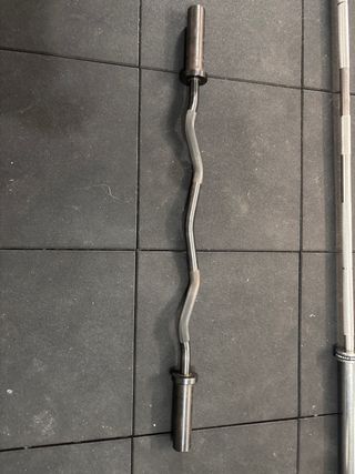 Barra Z Curl de Akon Fitness, diseñada para el entrenamiento de bíceps. - Diseño curvo para un agarre ergonómico. - Acabado metálico. - Ideal para ejercicios de curl.