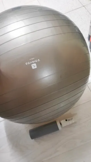 Pelota de ejercicio Domyos para Pilates en color gris. Incluye inflador como se ve en foto.