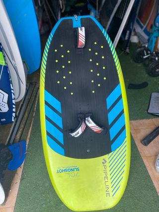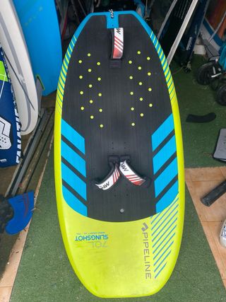 Tabla de wing foil Slingshot de 70 litros. - Modelo: Slingshot Wing Craft V2. - Capacidad: 70L. - Color: Amarillo y negro con detalles azules y amarillos. se vende solo la tabla (no el foil)