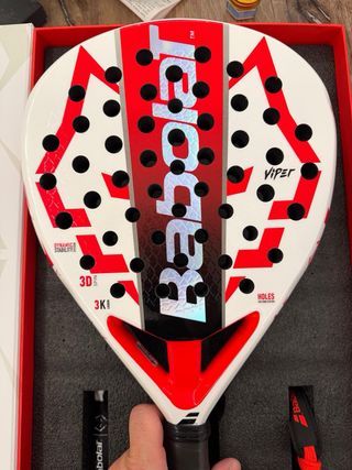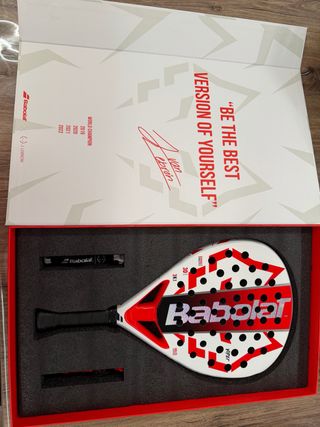 La pala de pádel Babolat Viper Juan Lebrón. - Diseño exclusivo con firma de Juan Lebrón. - Incluye los años de sus campeonatos: 2019, 2020, 2021, 2022. - Mensaje inspirador: BE THE BEST VERSION OF YOURSELF. - Presentada en caja de coleccionista. Probada solo en un entreno.