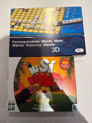 Dos juegos de mesa para divertirse en familia o con amigos. - Formapalabras 3D: Juego de palabras con tablero. - Ni Sí Ni No: Juego de preguntas y respuestas.