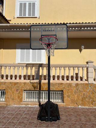 Canasta de baloncesto Tarmak con base rellenable. - Aro de color rojo. - Red de baloncesto. - Altura ajustable hasta altura de competición