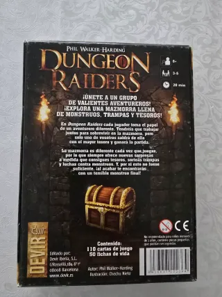 Juego de mesa Dungeon Raiders de Phil Walker-Harding. Explora una mazmorra llena de monstruos, trampas y tesoros. Siempre jugado con fundas. - Edad recomendada: 8+ años. - Jugadores: 3-5. - Duración: 20 minutos.