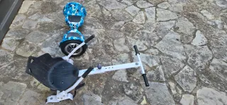 Patinete eléctrico casi sin uso, nuevo cuesta 180e, lo dejo en 60. - Base con estampado de iconos. - Manillar ajustable. - Ruedas resistentes.