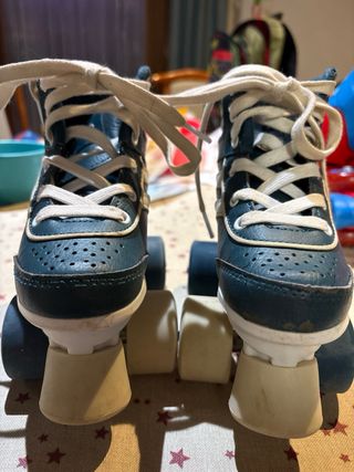 Patines de cuatro ruedas de la marca Belati en color blanco con plancha variant muy bien conservados. - Talla 34. - Diseño clásico con cordones. - Ruedas de color claro (están un poco gastadas)