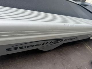 Cinta de correr para ejercicio en casa. La Steelflex XT 6600 cuenta con 25 programas de entrenamiento que se muestran en una pantalla LED de 3 ventanas y una pantalla LED de matriz de perfiles. Steelflex comercializa este equipo como un modelo comercial "ligero", pero no lo es en absoluto. El motor tiene 2.4 hp, la banda de rodadura mide 50.8 cm x 137 cm, la inclinación es del 15%, la velocidad máxima es de 16 km/h, el sistema de amortiguación es SDS y la capacidad de peso es de 150 kg. Las especificaciones de este modelo no lo convierten en una buena cinta de correr comercial. La garantía de la XT 6600 solo cubre el motor durante