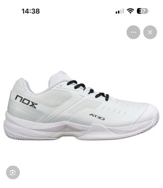 Zapatillas de pádel de la marca NOX, modelo AT.10 talla 44 solo dos partidos. paletero nox pala nox lo que sale son rayones no golpes está perfecta ropa conjuntos nox en talla M 4 o 5 conjuntos muñequeras nox calcetines nox sin usar 4 pares chaqueta nox gris otra negra corta viento nox negro sin usar talla L y muchas cosas más. lo vendo todo junto de momento iré poniendo fotos. precio negociable