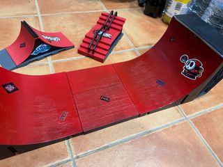 Set de rampas para patinete, ideal para practicar trucos. - Rampas de color rojo. - Incluye escaleras y rampas curvas. - Diseño de la marca Tech Deck.