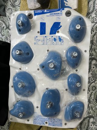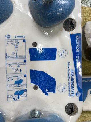 Pack de 10 presas de escalada SIMOND MEDIUM. - Color azul. - Diseñadas para entrenamiento y escalada. - Incluye tornillería para su instalación. - pesan mucho, no hago envíos, no regateo, completamente nuevas.