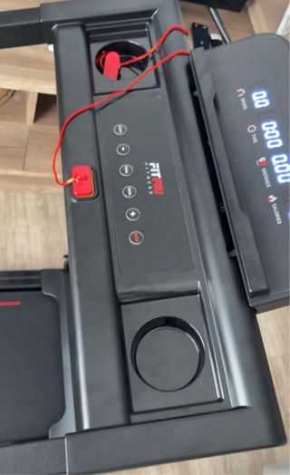 Cinta de correr Fitfiu MC-160 en color negro con detalles en rojo. - Diseño moderno y compacto. - Superficie de carrera amplia. - Pantalla digital integrada. - Se ha usado solo 1 vez.