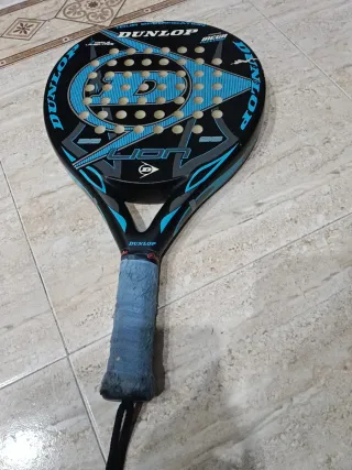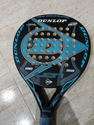 Pala de pádel Dunlop Lion en color negro y azul. Ideal para jugadores que buscan un buen rendimiento. - Diseño con logo Dunlop. - Empuñadura azul.
