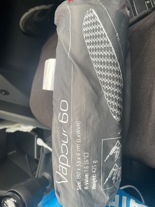 Esterilla de camping Vapour 60. - Tamaño: 190 x 55 x 6 cm (Largo x Ancho x Alto). - Valor R: 1.6 (6°C). - Peso: 425 g.