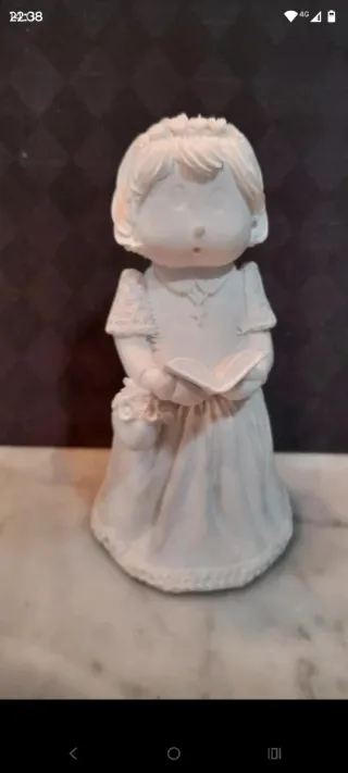 Figura de muñeca para comunión, ideal para personalizar. - Diseño de niña con vestido y libro. - Incluye un pequeño bolso. - Corona en la cabeza.